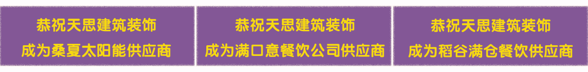天思裝飾為您提供方便的一站式服務(wù),不僅能夠提供設(shè)計(jì)與施工服務(wù),還為您提供建材和家具。我們與眾多建材廠商、家具廠商有著密切合作關(guān)系,品類(lèi)廣泛,物美價(jià)廉,滿足您的需求。
